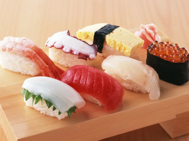 三文魚壽司,油甘魚壽司,赤蝦壽司,蒲燒鰻魚壽司,芥辣八爪魚軍艦,辣味螺肉軍艦,厚燒玉子壽司,蟹籽軍艦,龍蝦沙律軍艦,甜蝦壽司各1貫